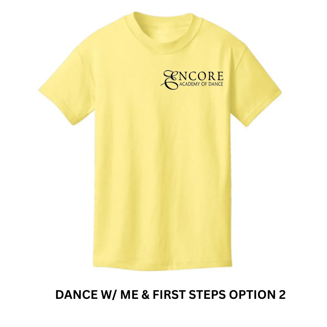 Dance with Me & First Steps can wear the following items. Pink ballet shoes for female dancers and black ballet shoes for male dancers. Long hair should be pulled up and out of the face.
